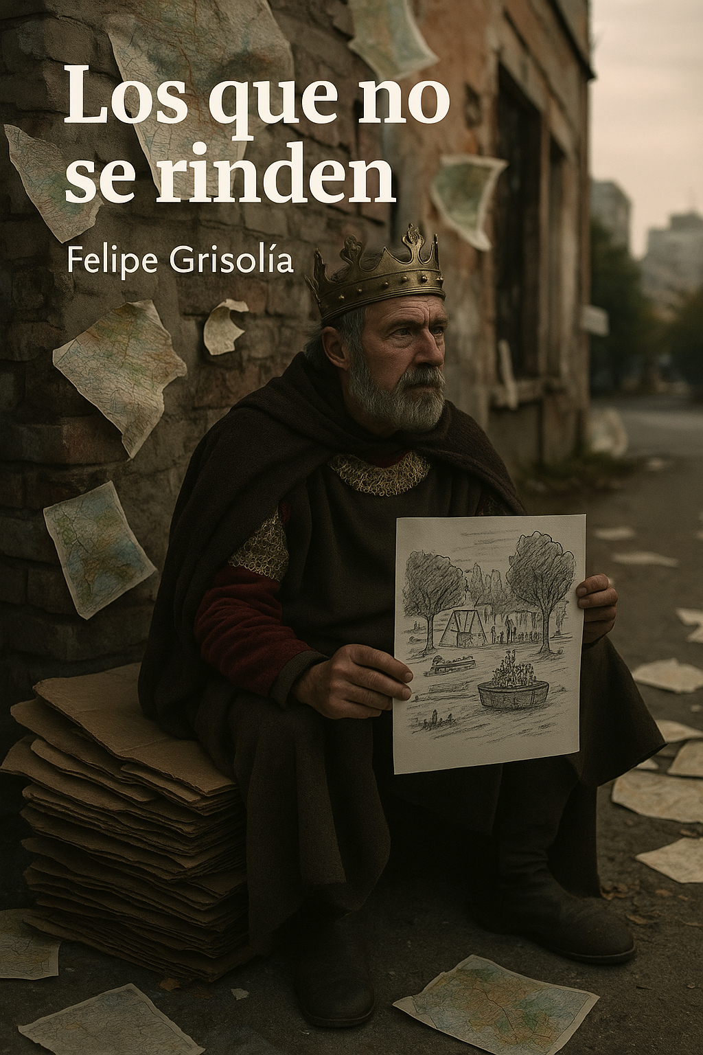 En una esquina deshabitada encontré a Fernando III. El rey estaba sentado en un banco que parecía de cartón piedra, rodeado de mapas que se movían con la brisa. Cuando me vio dijo: «Los pueblos que no se rinden tienen derecho a conservar su memoria.»